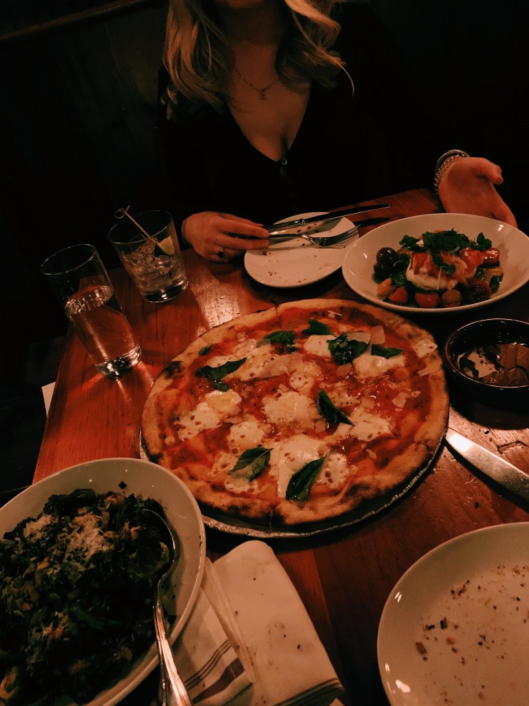 For our actual meal we ordered pizza, Brussel sprouts with parmesan, and then some kind of Lobster and cheese thing. We also had some drinks! Shoutout to my body for taking this meal like a champ, I am definitely not used to dairy and gluten like this. It was worth every bite though! Everything on the menu looked so good, that’s why we picked a few things to split so we could try everything. After dinner we went downstairs to this bar/club part of the restaurant, which was really fun! Hand sanitizer WAS used… A LOT.
