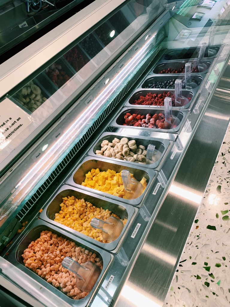 I also made my own smoothie! I ended up getting a customized version of “The Shake” which was made with frozen bananas, spinach, almond milk, peanut butter, and medjool dates. Um… so good. Pretty sure it’s my new favorite smoothie combo ever. No joke. I usually get a “create-your-own” of strawberries, peaches, almond milk, and banana, which is also really good, but the PEANUT BUTTER truly changed the game for my so I have to side with “The Shake.” I love their smoothie bar because they have pretty much every fruit you could ever ask for. They also have protein powders and other boosters that really elevate your smoothie! The one in the photo above also had such a thick and creamy texture too (I credit the frozen banana and the almond milk) which made it almost taste like a milkshake.