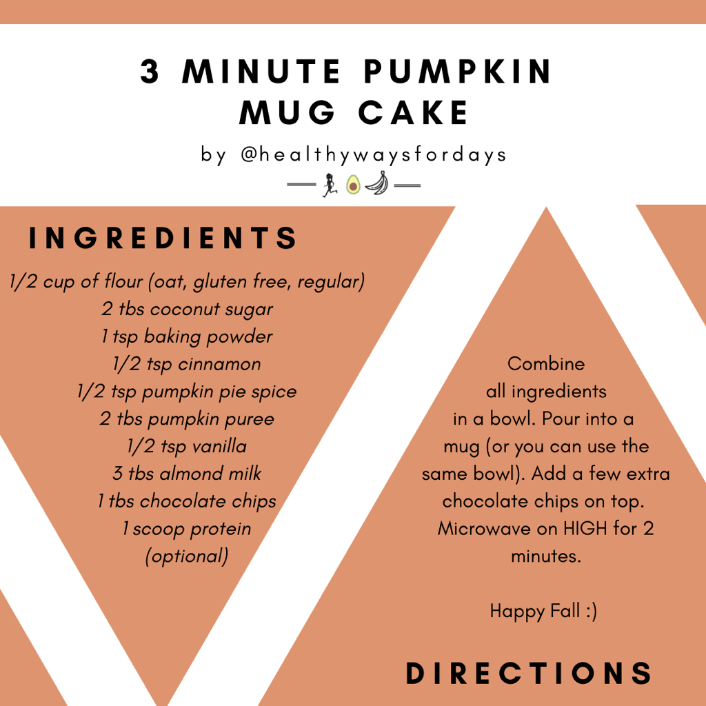 I guess it’s safe to say that I have been all about the Fall recipes this season and it’s NOT even October yet! I was experimenting in the kitchen today and came up with this super simple Pumpkin Spice Mug Cake! Best part about this recipe, it requires ingredients that you likely already have on hand & it takes about 3 minutes from start to finish to make!