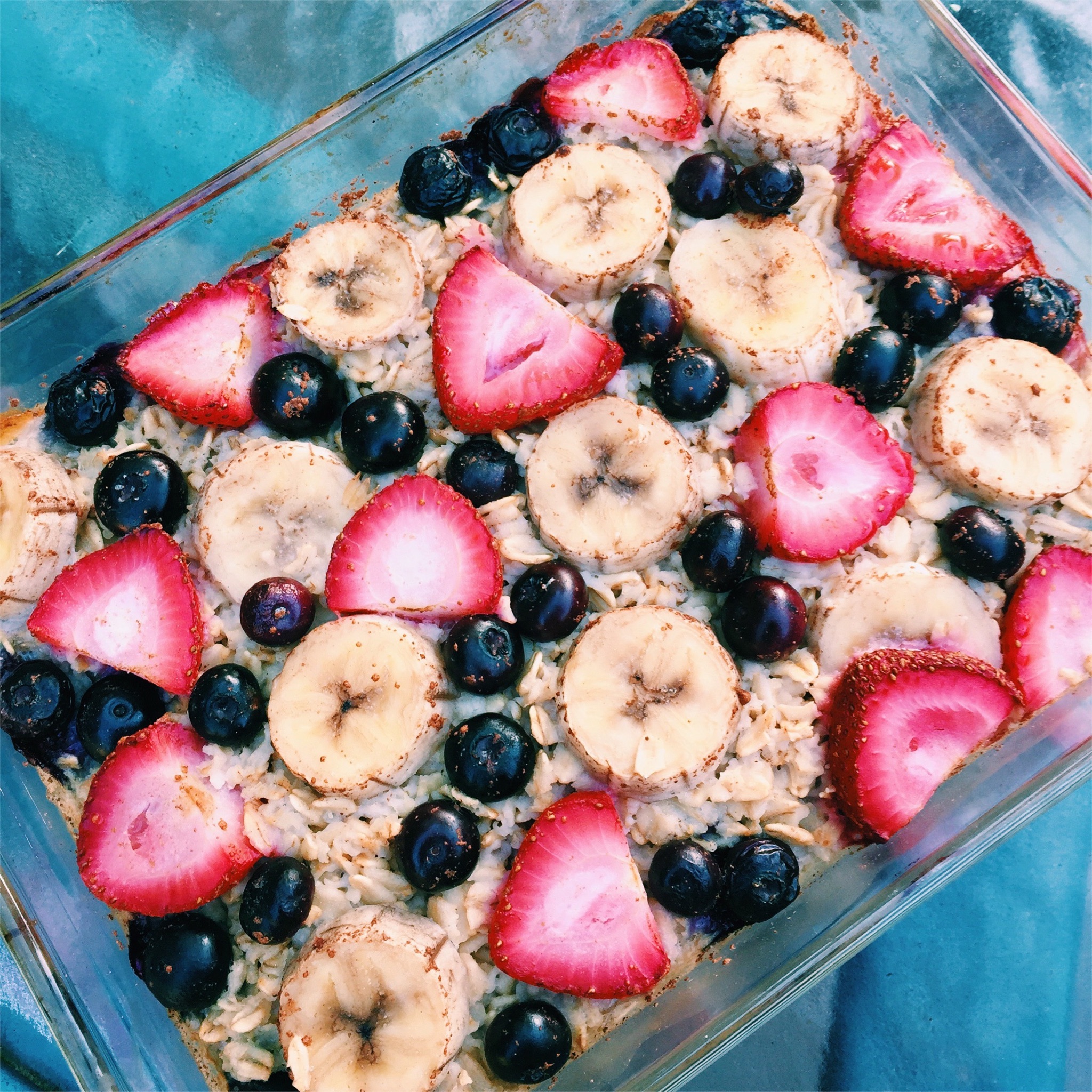 - Fruit for topping (Berries, Bananas, Apples, Raisins) If you’re doing the pumpkin spice oatmeal bake you can do 1/3 cup of pumpkin inside the oatmeal bake, but that recipe will likely have its own recipe page eventually.